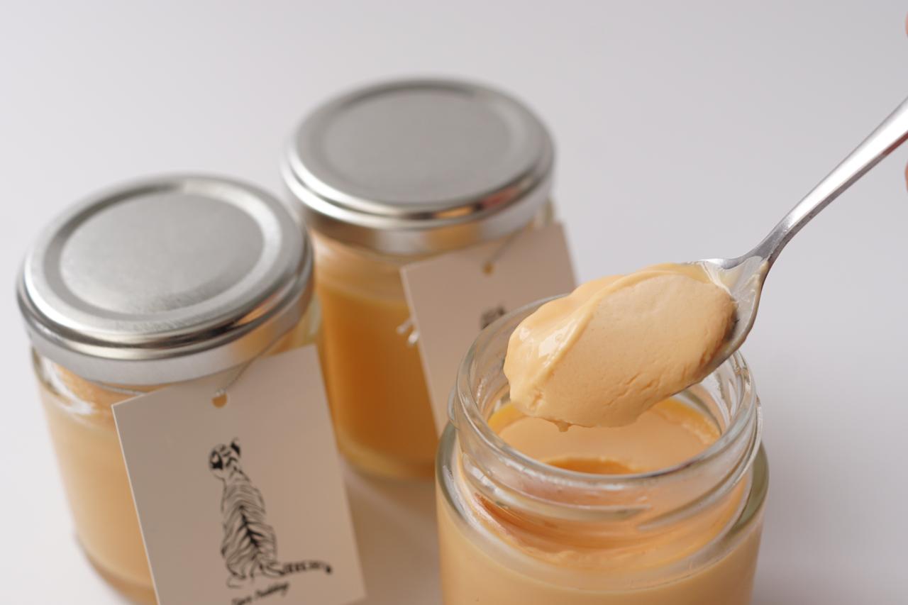 極上とろりプリンと材料も配合も全く同一ですが、蒸し時間・温度を変え、たまごの風味を引き立てています。口に入れるとたまごの優しい香り、食べ進めるにつれミルクのコクと甘さがバランス良く上品に味わえるプリンに仕上げました。